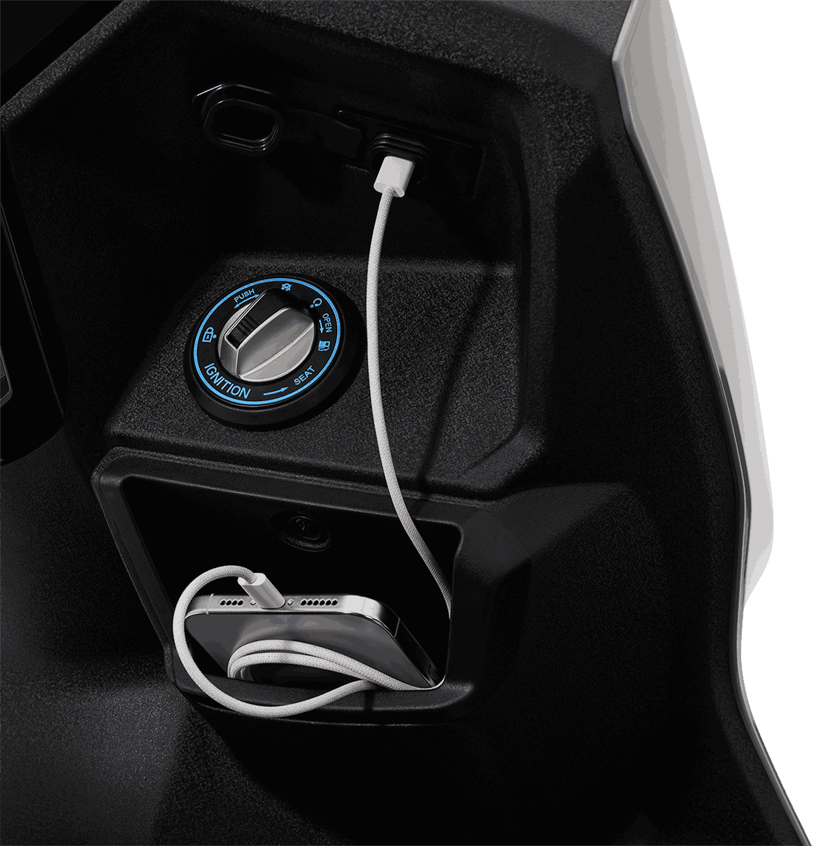 • พื้นที่เก็บของจัดเต็ม: ช่องเก็บของใต้เบาะจุได้ถึง 20 ลิตร ใส่หมวกกันน็อกแบบเปิดหน้าได้สบายๆ พร้อมช่องชาร์จไฟ USB Type-C ด้านหน้า ไม่พลาดทุกการสื่อสาร