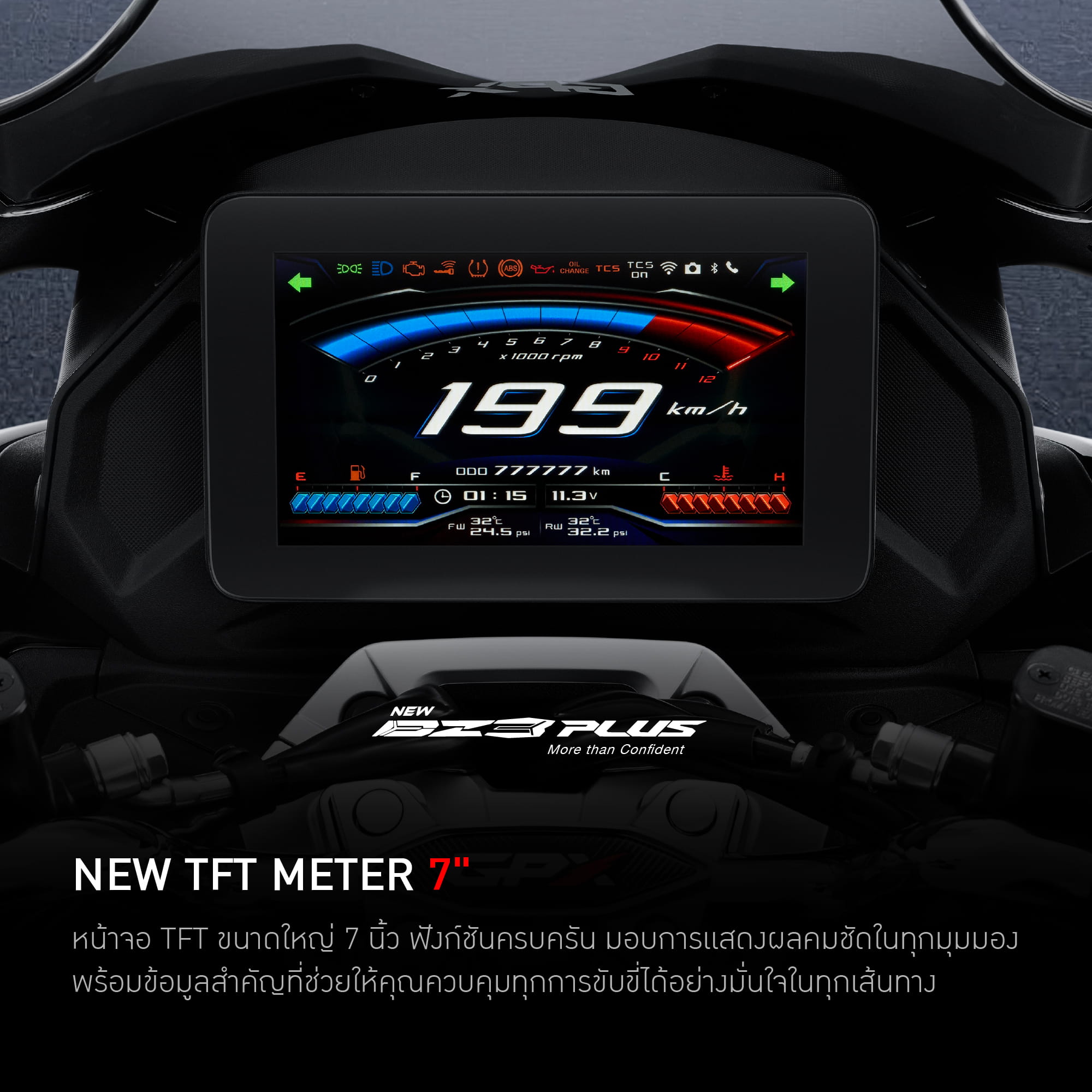 • เรือนไมล์สุดล้ำเมนูภาษาไทย จอสี TFT ขนาดใหญ่ 7 นิ้ว พร้อม ระบบบลูทูธแชร์หน้าจอกับมือถือได้ รับสายโทรเข้าได้ สามารถปรับแสงสว่างโหมด DAY / NIGHT รวมถึงปรับTHEMEหน้าจอได้ และสามารถเชื่อมต่อ motoFUN Application ได้